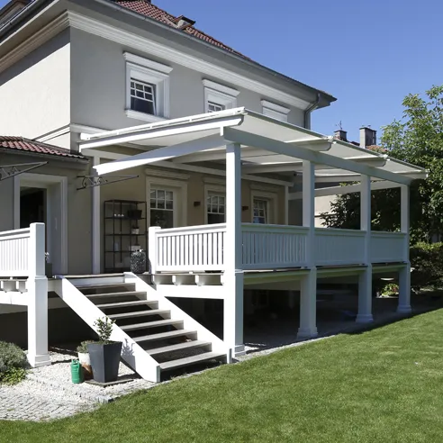 Sie können auch Ihre Anlage mit einer Markise ausstatten, die Sie mit einer Fernbedienung und Somfy-Funkmotor bedienen oder mit in Ihr Smart-Home anbinden können.